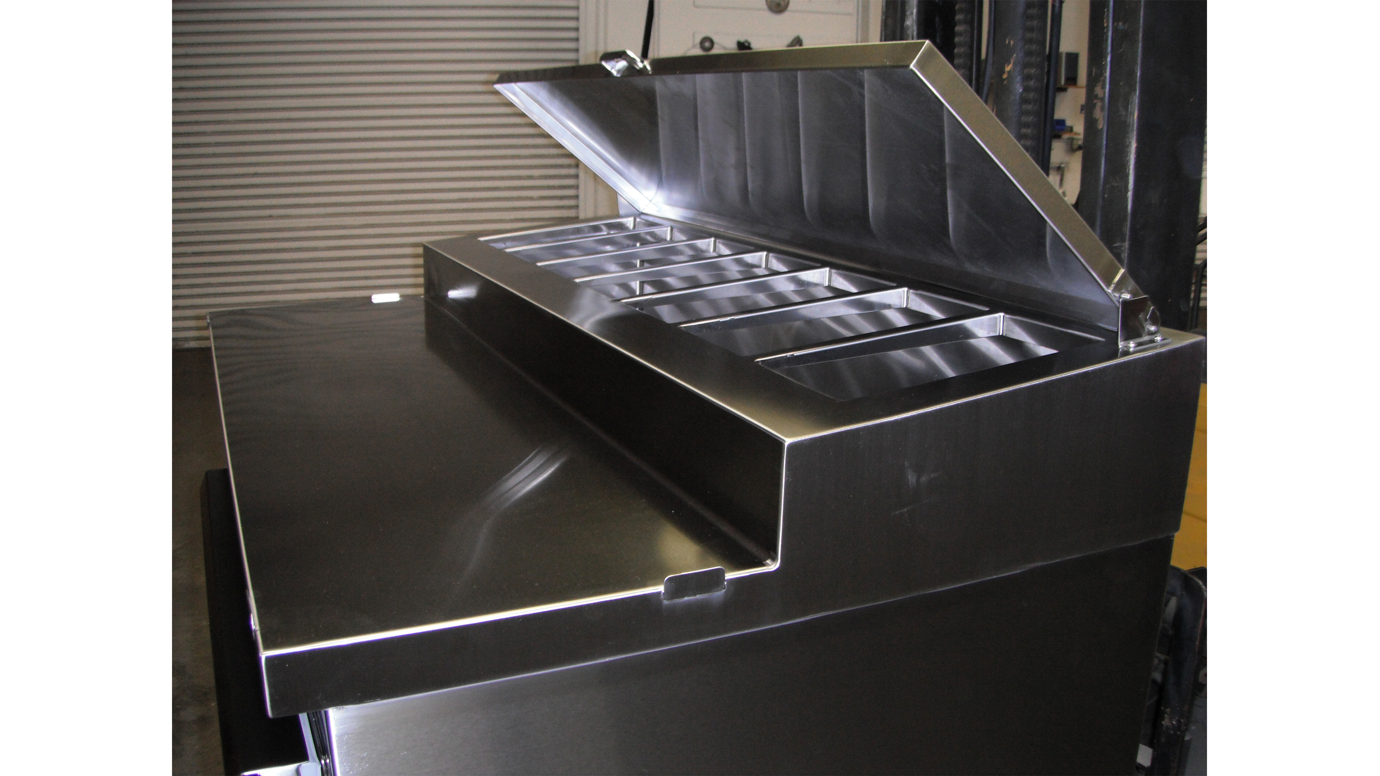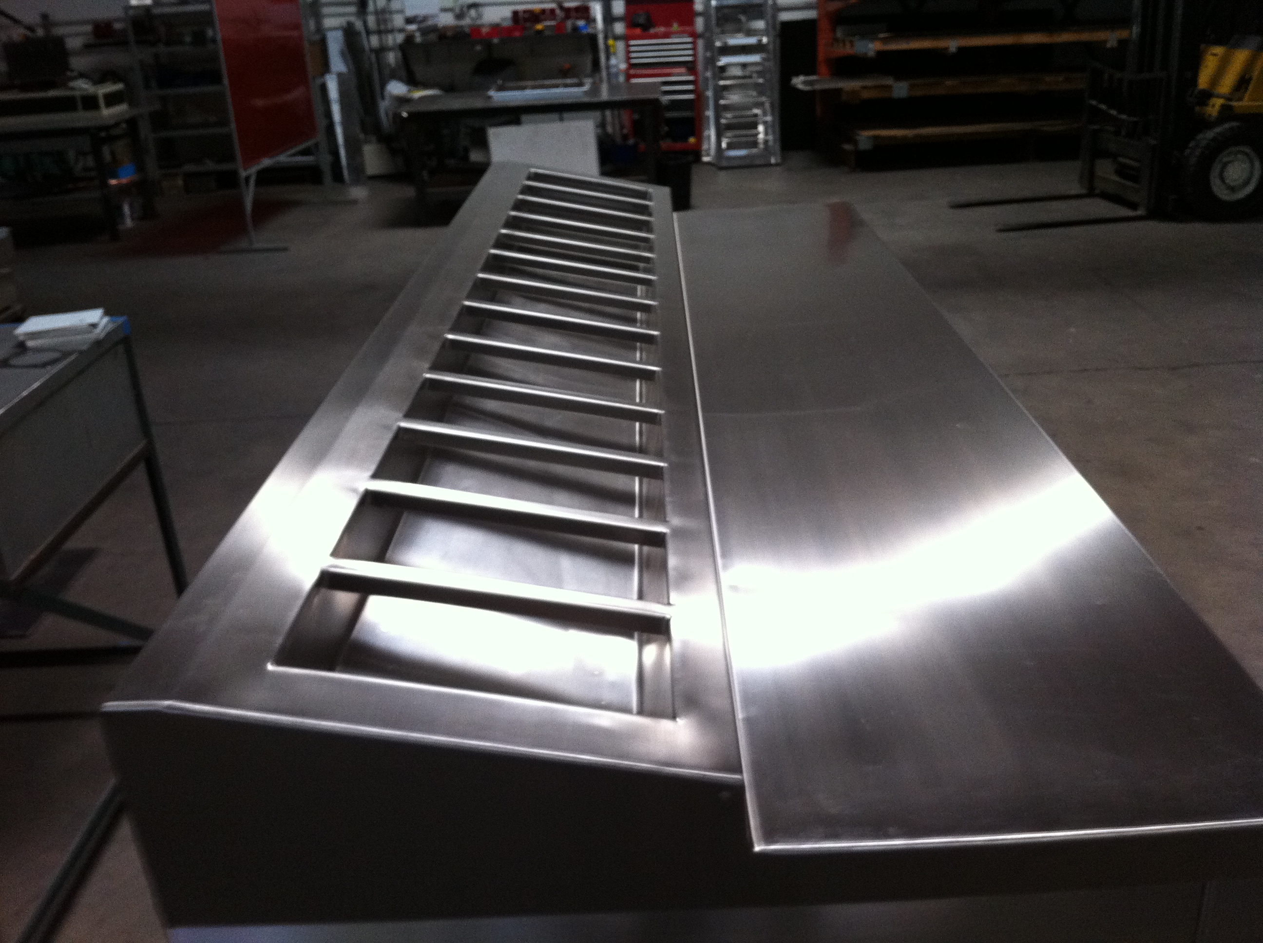 The Unit is one-piece 16 gauge stainless steel, as is the interior liner. All other stainless steel components are also fabricated using 18 gauge material. A detailed bill of materials is attached for reference.